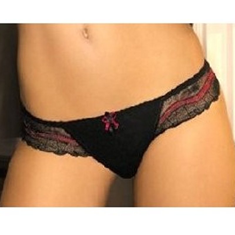 String KIKI avec une très belle dentelle orné de petits noeuds noir et rouge et un laçage à l'arrière, très léger et agréable à porter